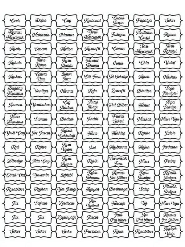 DeepCraft 112 Adet Baharat Etiketi Kavanoz Sticker Folyo Etiket Suya Dayanıklı- 4x2 Cm 112 Adet