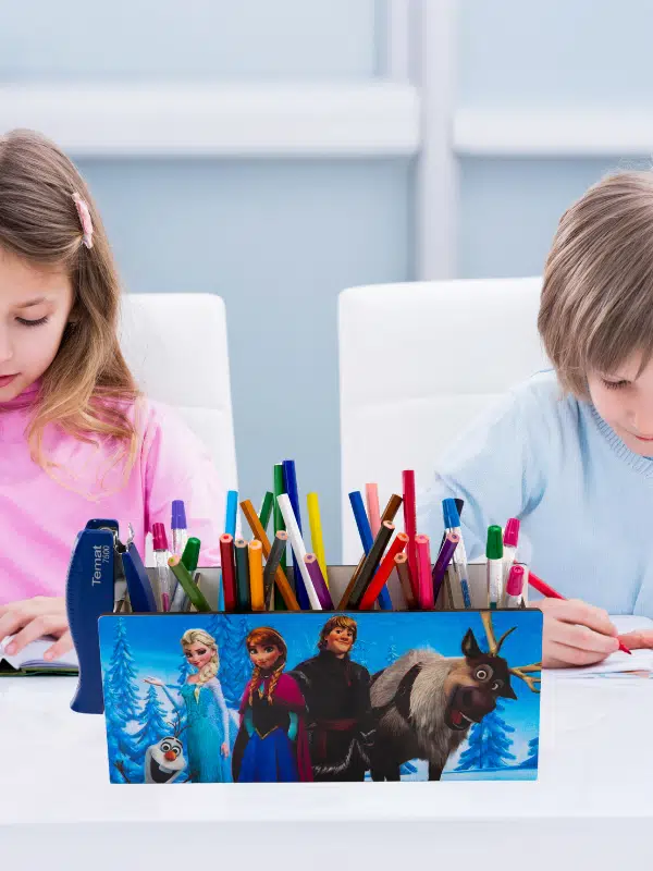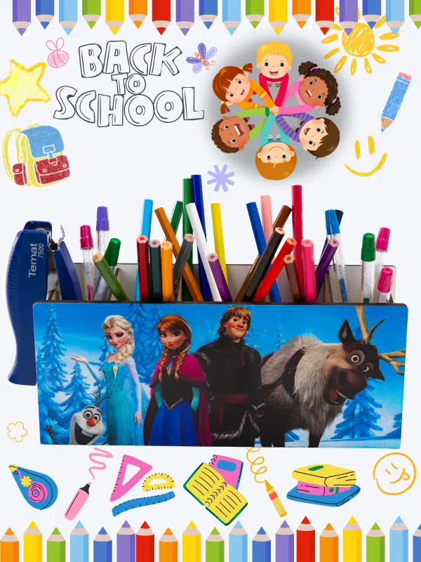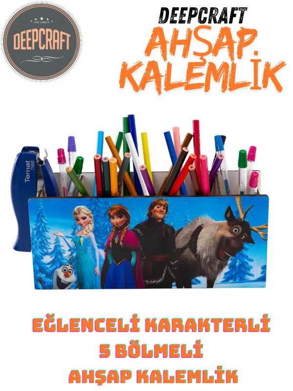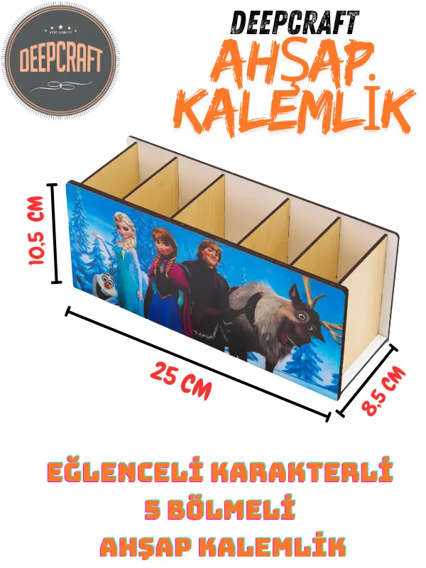 DeepCraft Ahşap Çocuklar İçin Masa Üstü Kare Kalemlik & Organizer-Elsa