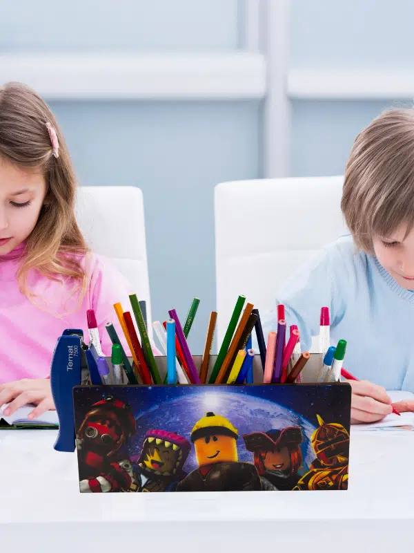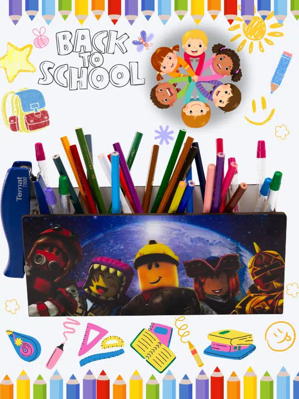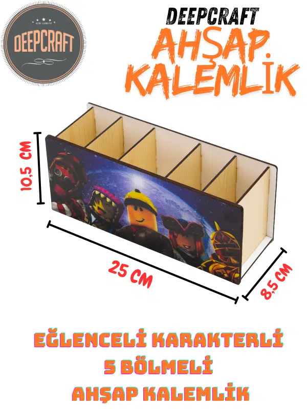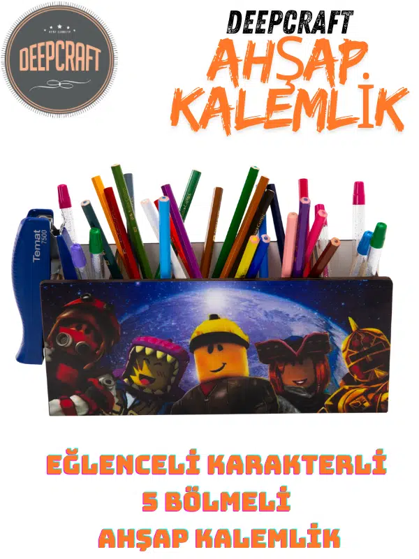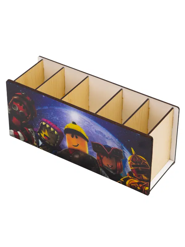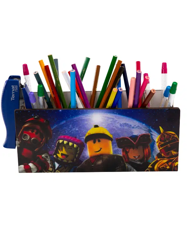 DeepCraft Ahşap Çocuklar İçin Masa Üstü Kare Kalemlik & Organizer-Roblox