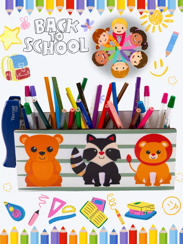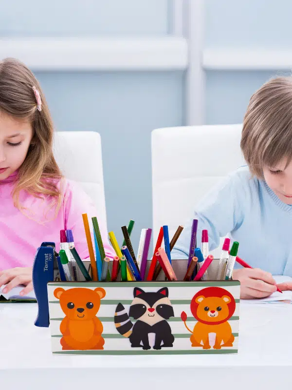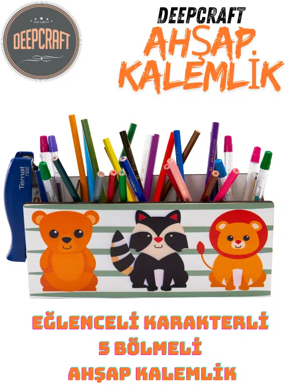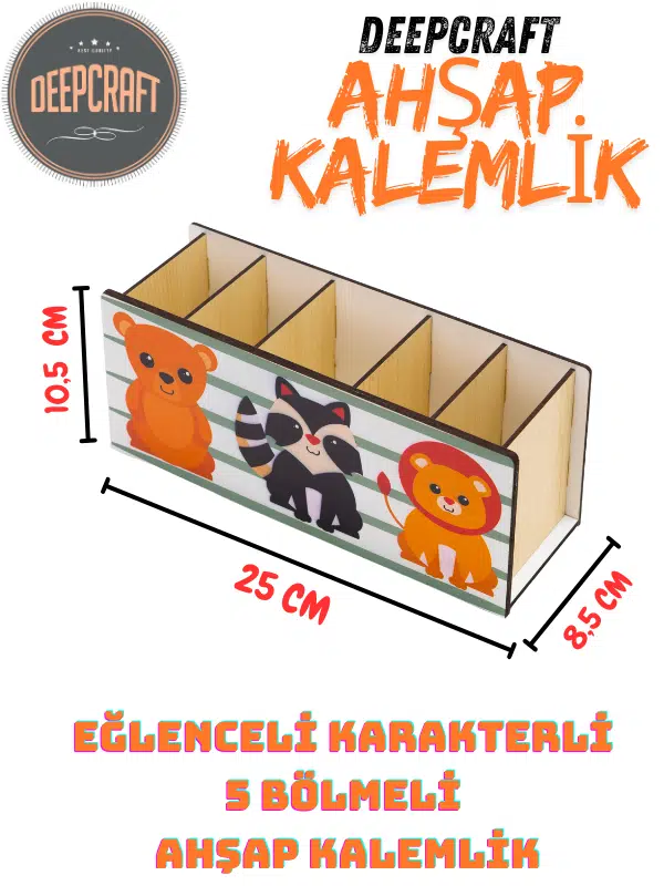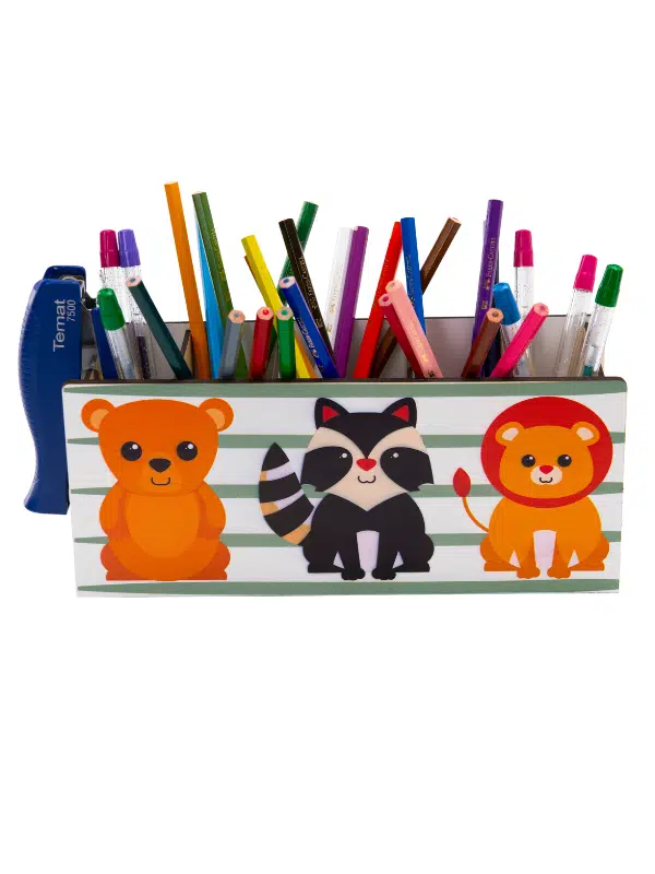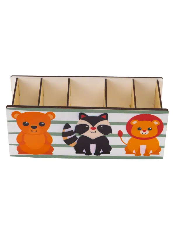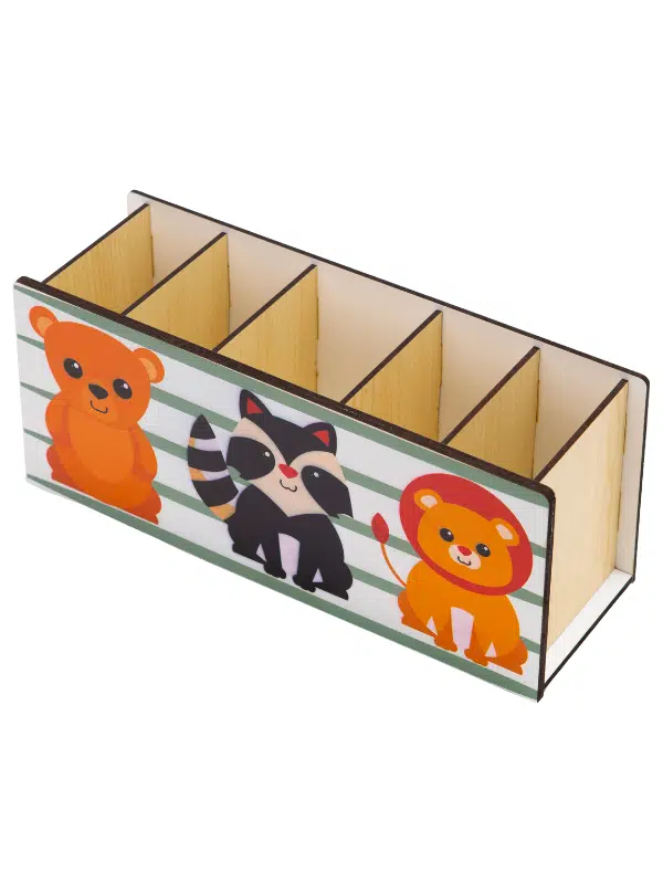 DeepCraft Ahşap Çocuklar İçin Masa Üstü Kare Kalemlik & Organizer-Safari