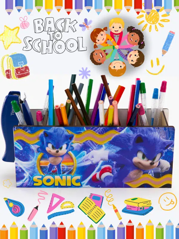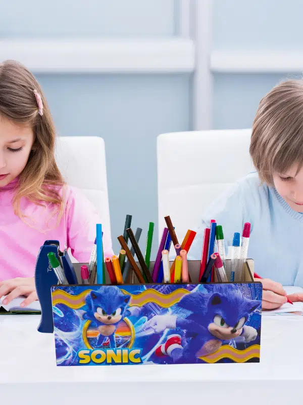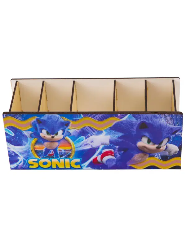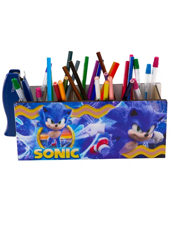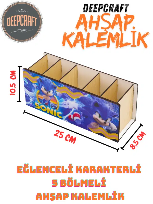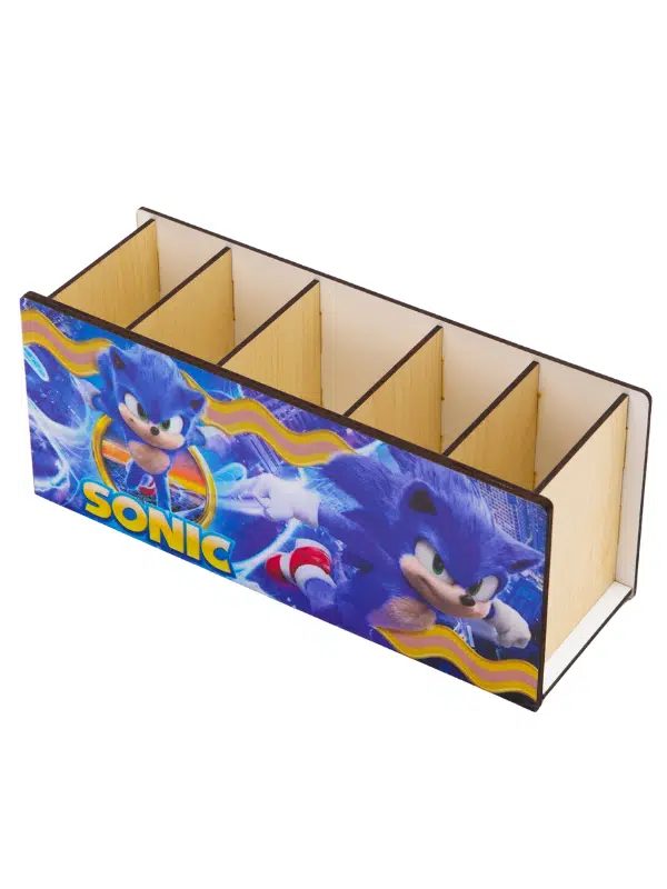 DeepCraft Ahşap Çocuklar İçin Masa Üstü Kare Kalemlik & Organizer-Sonic