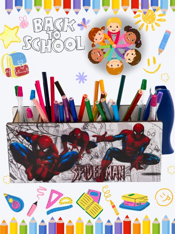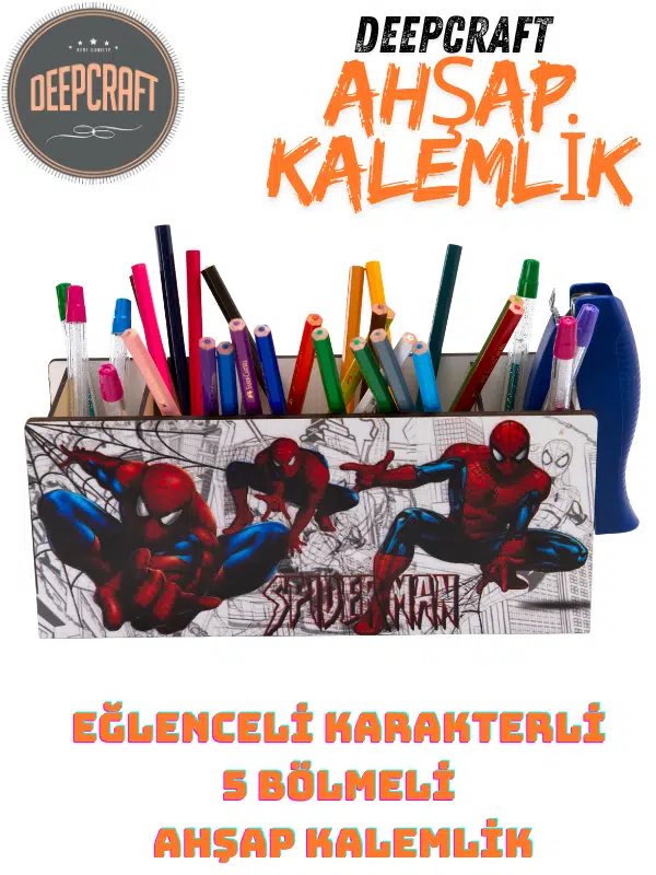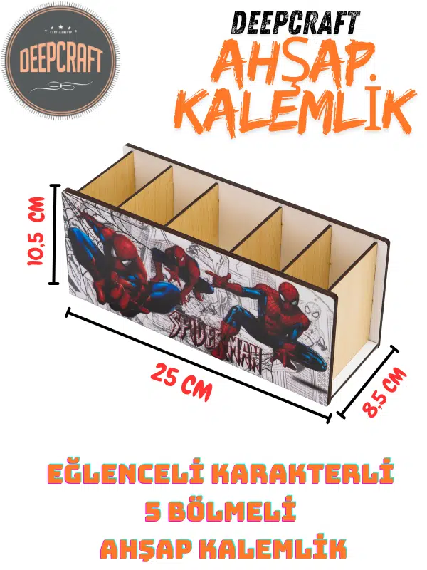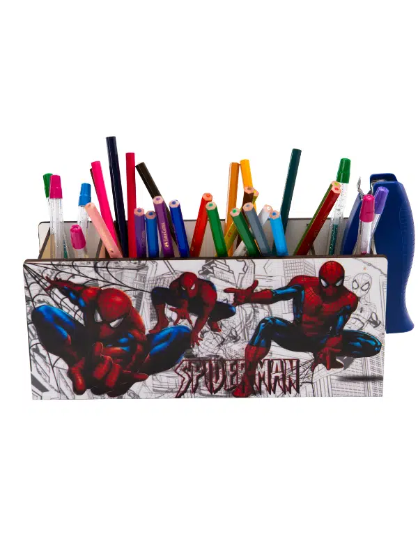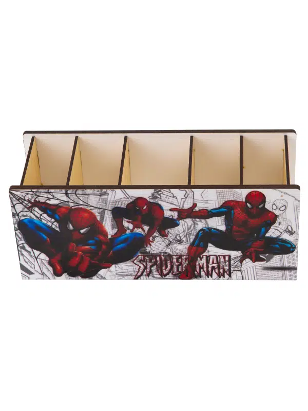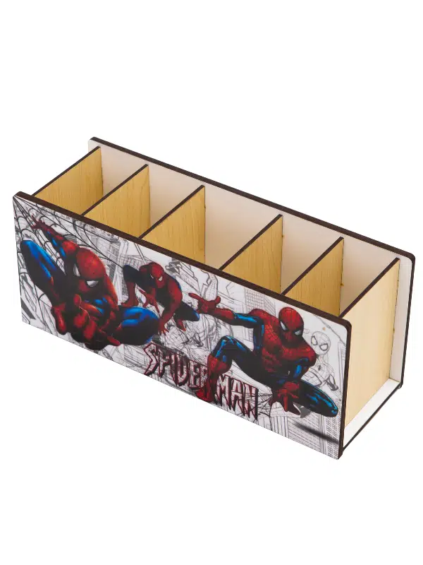 DeepCraft Ahşap Çocuklar İçin Masa Üstü Kare Kalemlik & Organizer-Spiderman