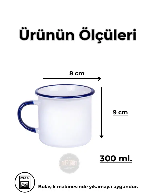 DeepCraft Best Quality Enamel Mavi Kulp Kupa Yılbaşı,Sevgililer Günü, Hediyelik Kupa 300ML