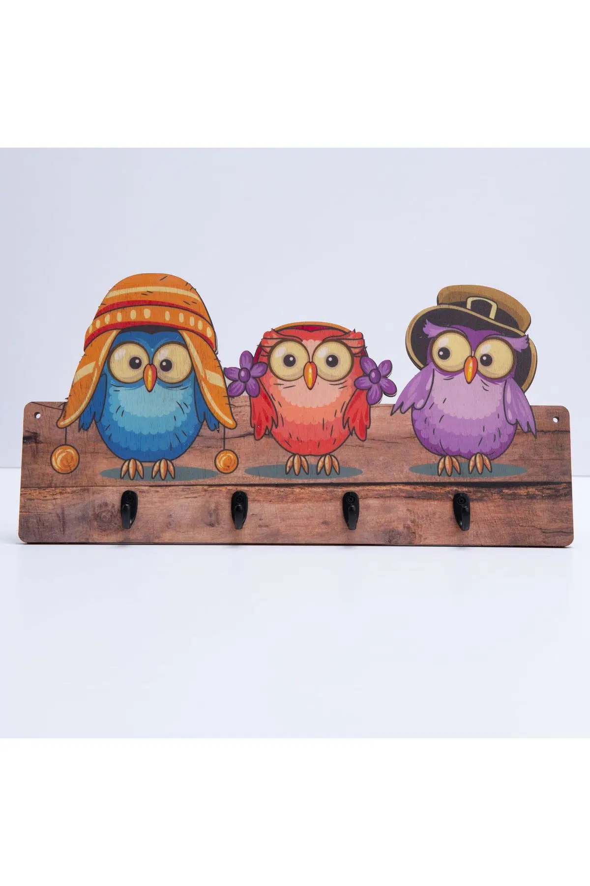 Deep Creative Çocuk Odası Duvar Askılığı 4 Askılı Montessori Doğal Ahşap Uv Baskılı Şapkalı Baykuş Çocuk odasına eğlence katmak, Montessori eğitime destek bir üründür. 8 Mm Doğal Ahşaptan üretilmiştir. Ürünümüz UV Baskı makinesinde High Quality Baskı Kalitesinde basılmış olup ev içi kullanıma uygundur. Ürün Ölçüleri; 39,5* 19,5 cm, Askı boyu 2,5 cm, Ürün Kalınlığı 8 mm dir. Ürünü yanında gönderilen vidalar ile basitçe kurulumu yapılabilecektir.