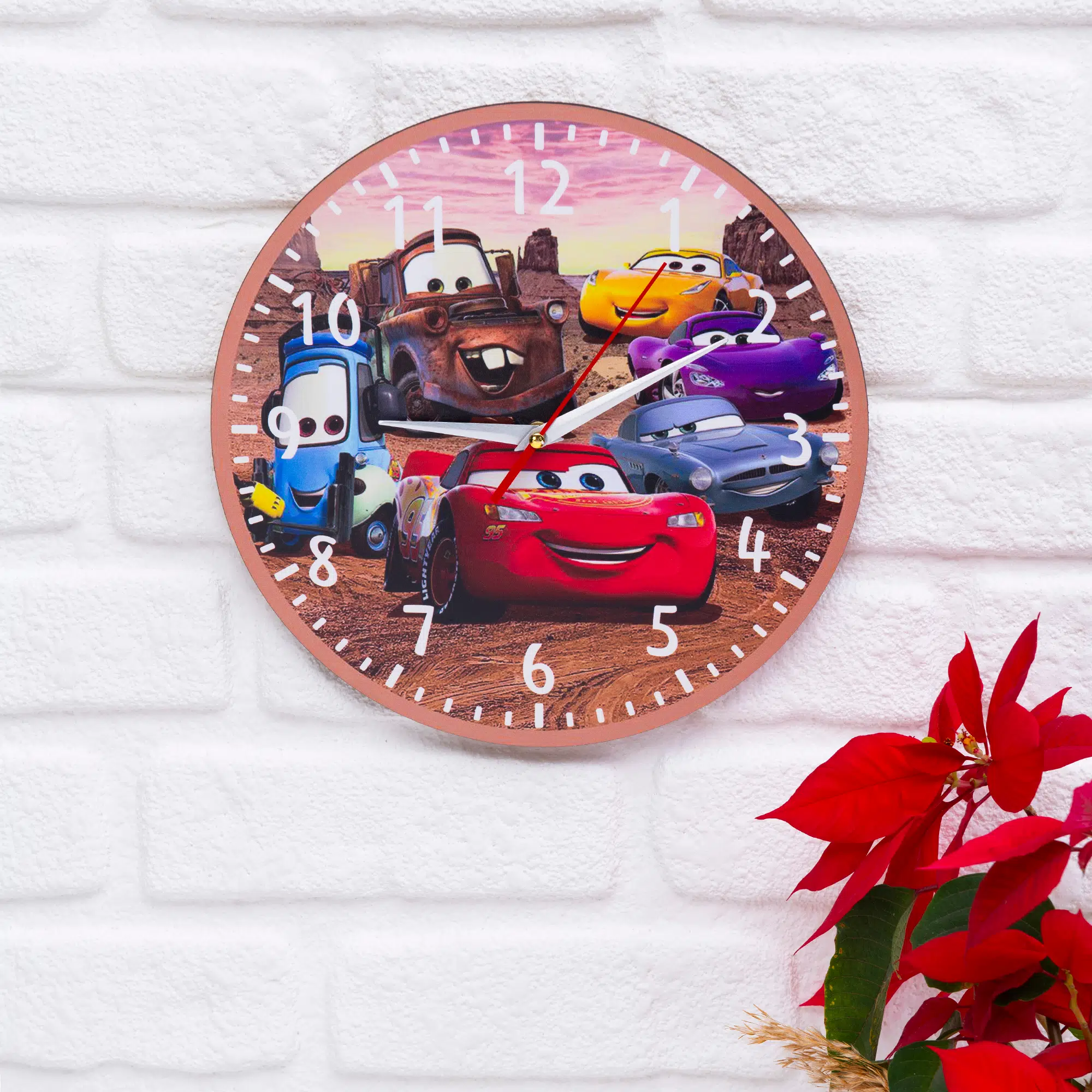 Deep Craft Dekoratif Ahşap Duvar Saati Salon,Çocuk Odası Eğlenceli Arabalar