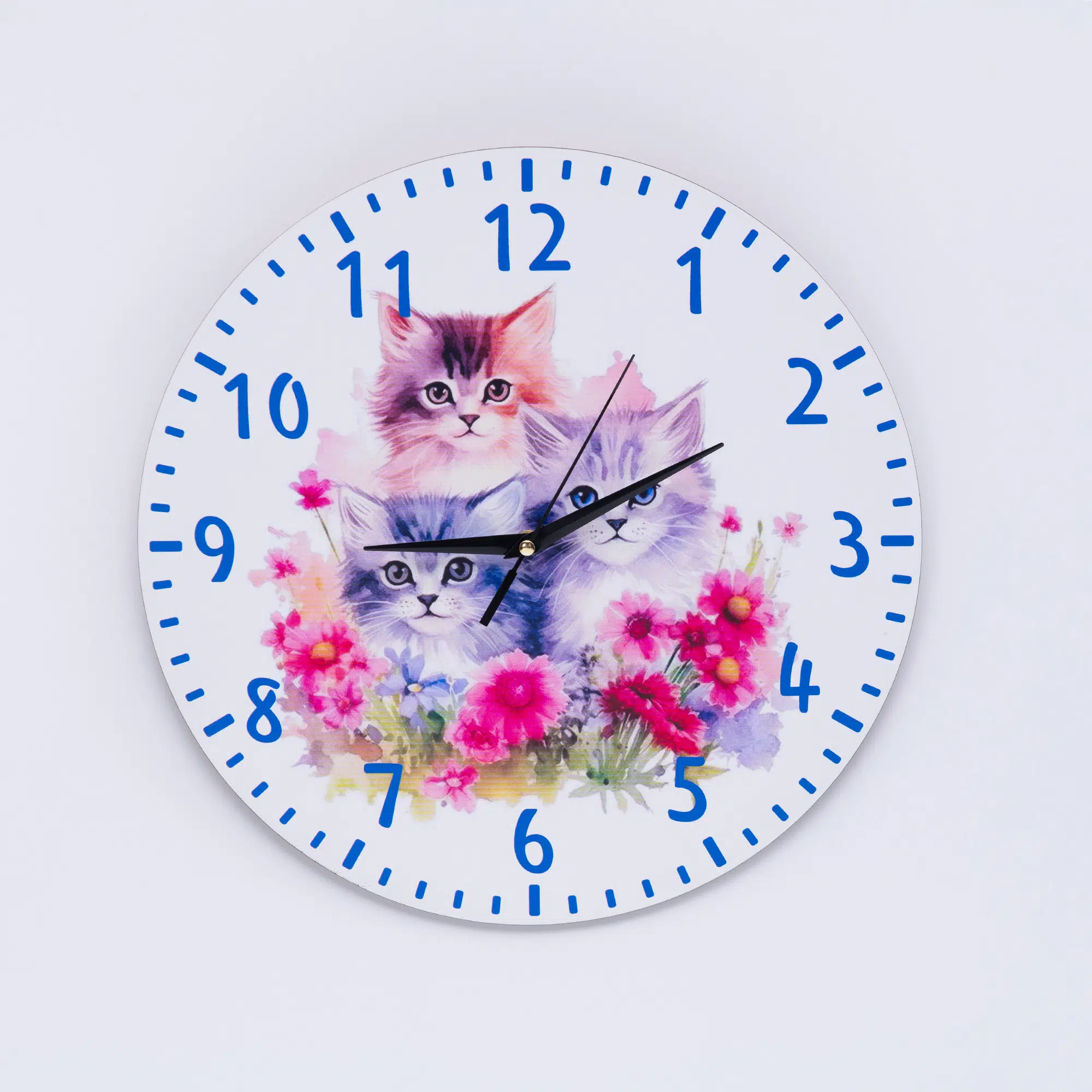 Deep Craft Dekoratif Ahşap Duvar Saati Salon,Mutfak,Ofis,Çocuk Odası Saati - Kediler