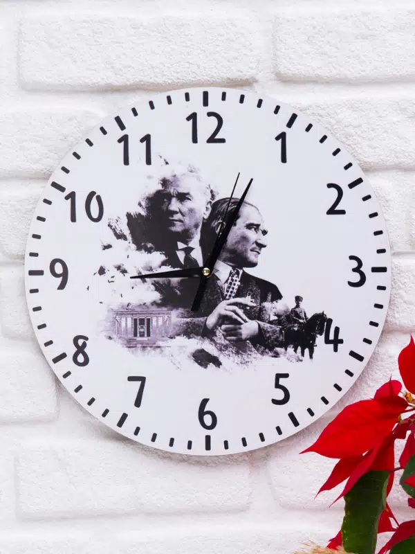 Deep Craft Dekoratif Ahşap Duvar Saati Salon,Ofis,Büro,Ev Şık Tasarım-Atatürk