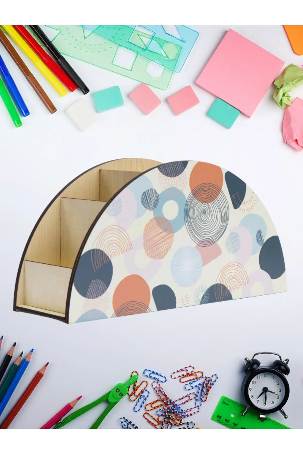 Deep Creative Ev ve Ofis Masa Düzenleyici Organizer Masa Üstü Kalemlik & Organizer Masa üstü dağınıklıklarına son! Kalemlik & Organizer işte burada! Masa üstü kalemlik ve organizer, çalışma masanıza düzen getirmek için harika bir seçenektir. Beş farklı boyutta bölmeleri sayesinde telefonunuzu, kalemlerinizi, makasınızı ve diğer ofis malzemelerinizi ideal boyutlarda saklayabilirsiniz. Ve en güzel yanı? Hiçbir uğraşa gerek yok, hemen kullanmaya başlayabilirsiniz! Bu organizer sayesinde, çalışma masanızda daha fazla alan kazanabilir ve işlerinizi daha kolay halledebilirsiniz. Boyutları 27* 13,5 * 7,5 cm