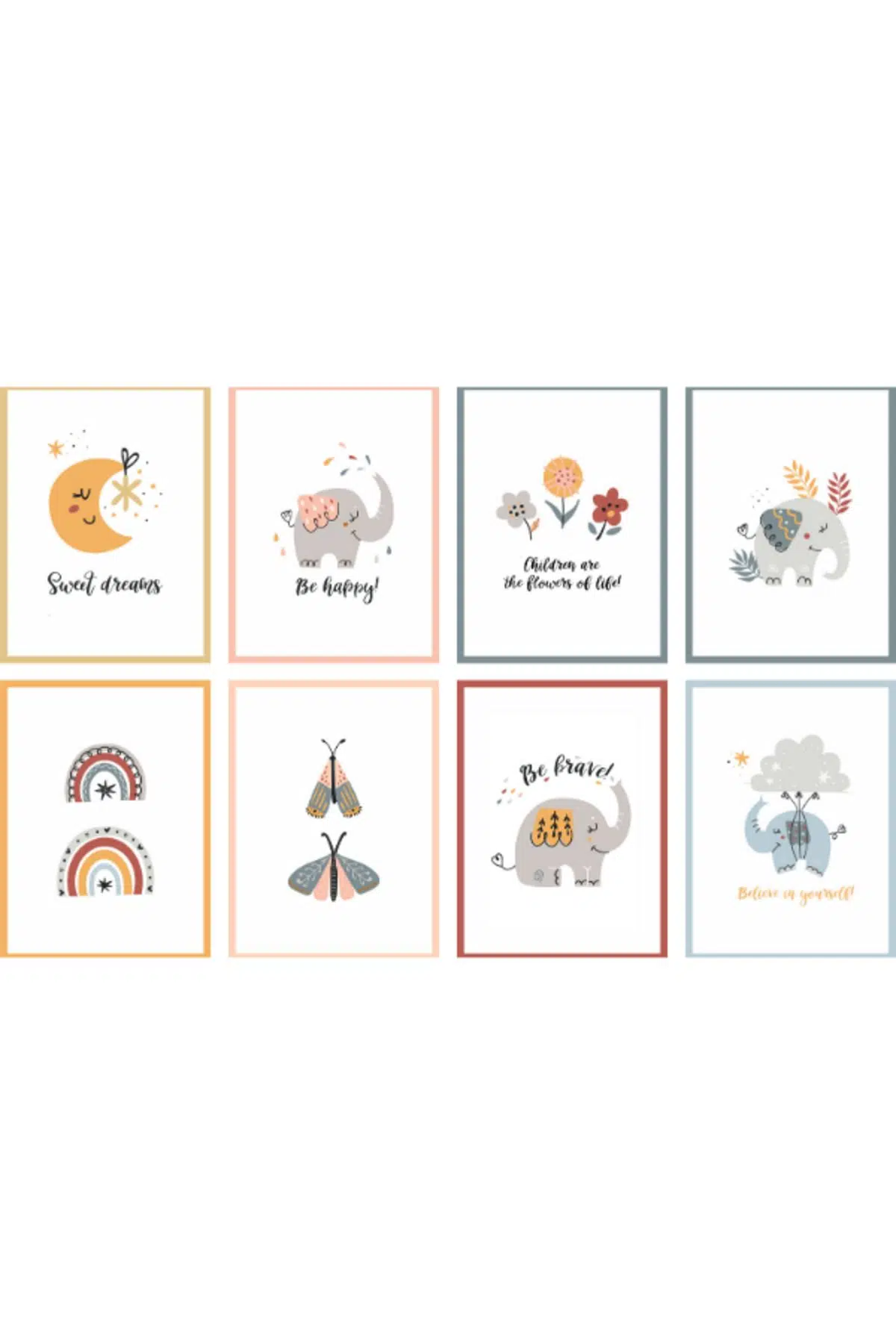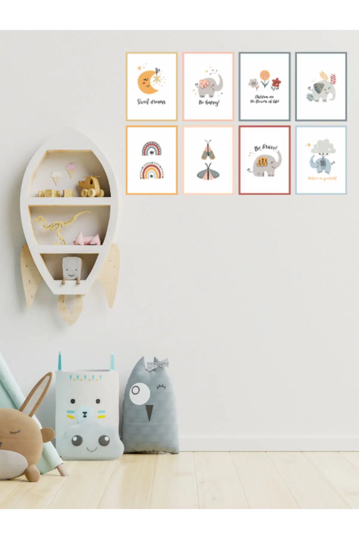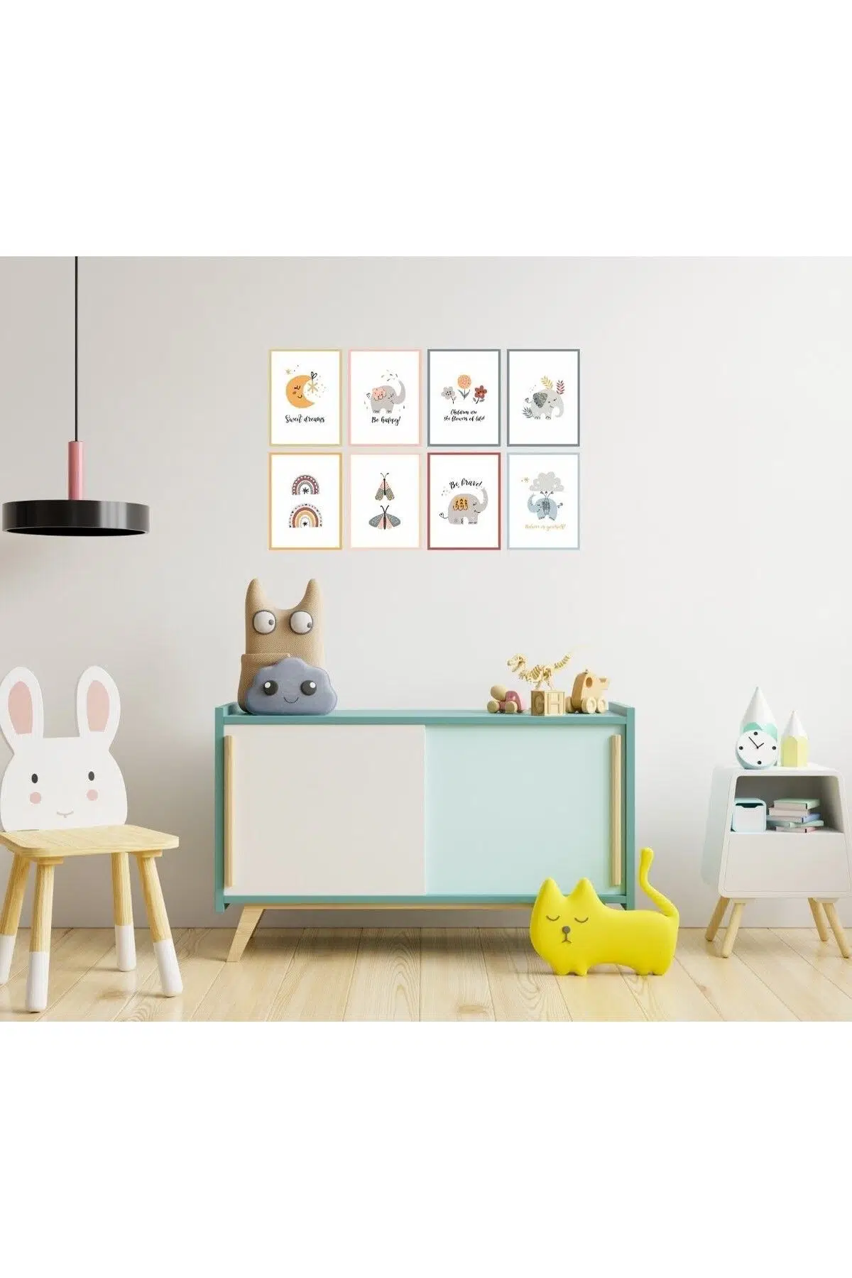 Berenden Mdf Tablo 8 Parça Çerçeve Görünümlü Çocuk Odası Tablo Seti Yüksek Kalite UV Baskı Makinesinde 3 mm Mdf üzerine baskı yapılmıştır. Ürüne ait Notlar: Üründe ayrıca çerçeve yoktur baskı yöntemi ile çerçeve efekti verilmiştir. Ürünü duvara asmak için Çift taraflı bant gönderilecektir. Tablo Ölçüleri: 8 adet 15 x 20 Cm Mdf Ahşaptan Üretilmiştir. Görselde ki ölçüler TEMSİLİDİR. Açıklamalarda yazan 15x20 Cm ölçüsündeki tablo gönderilecektir.