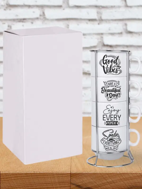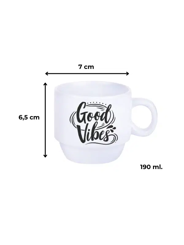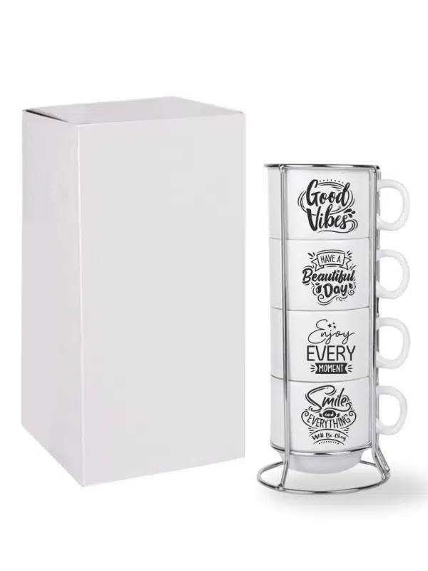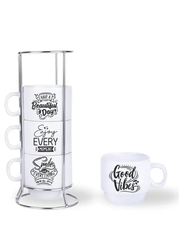 DeepCraft Stantlı 4'lü Fincan Seti Çıkmaz Baskılı Good Vibes Motto Desenli 4 Adet Fincan Seti 190 ml