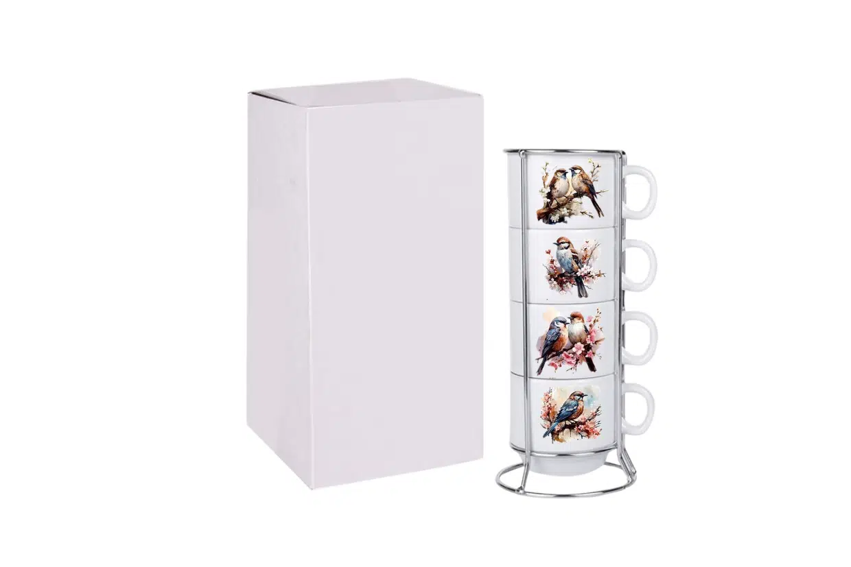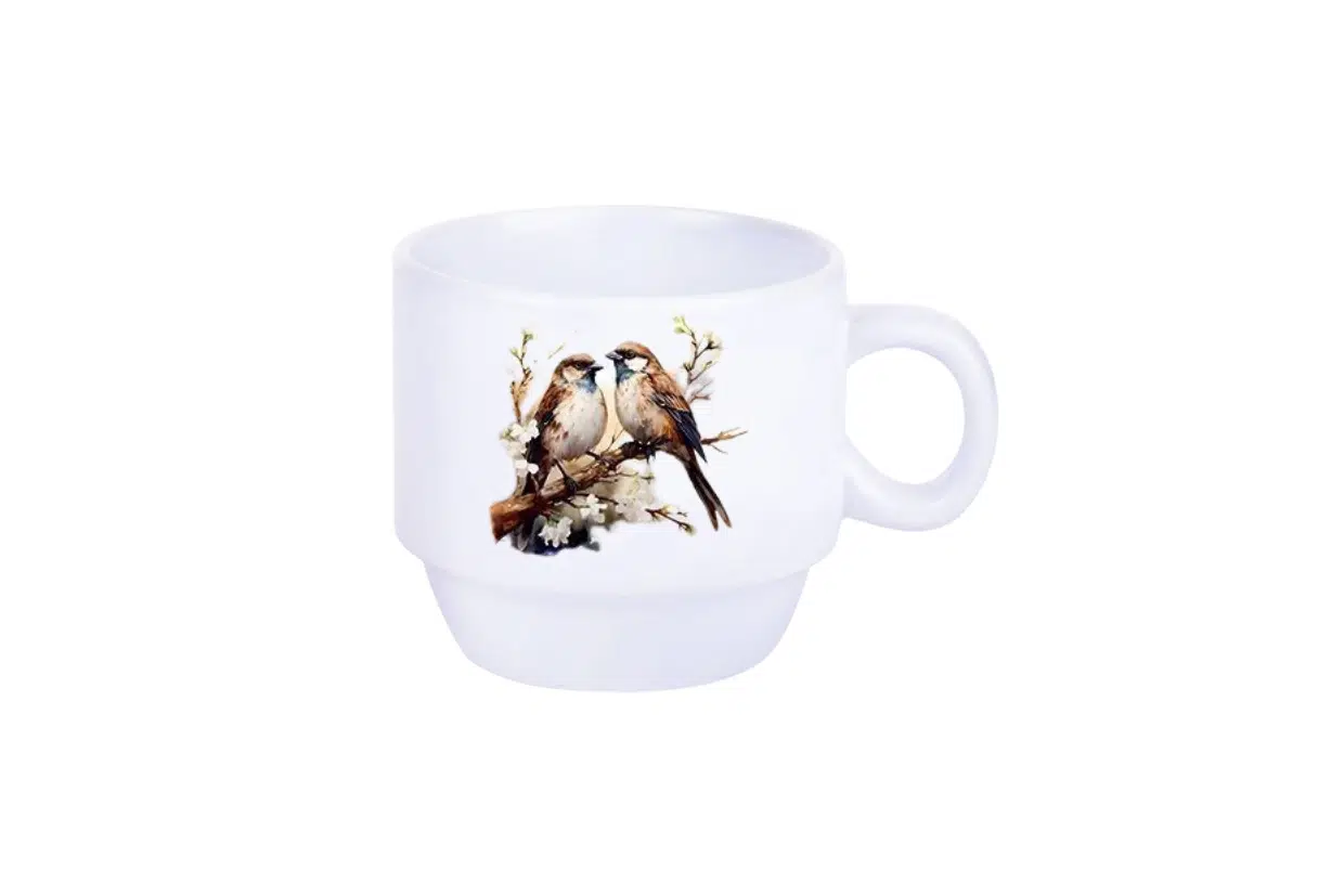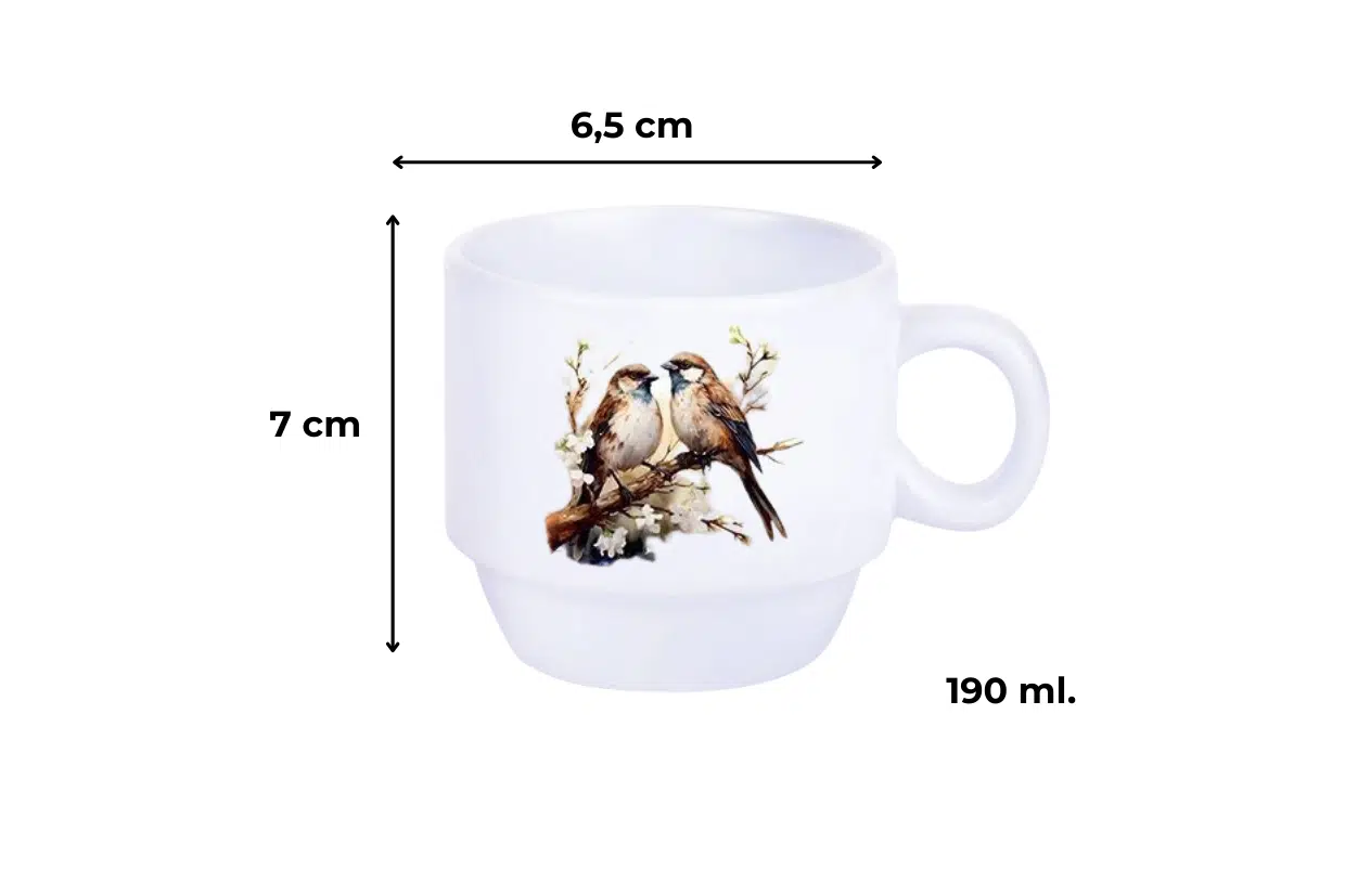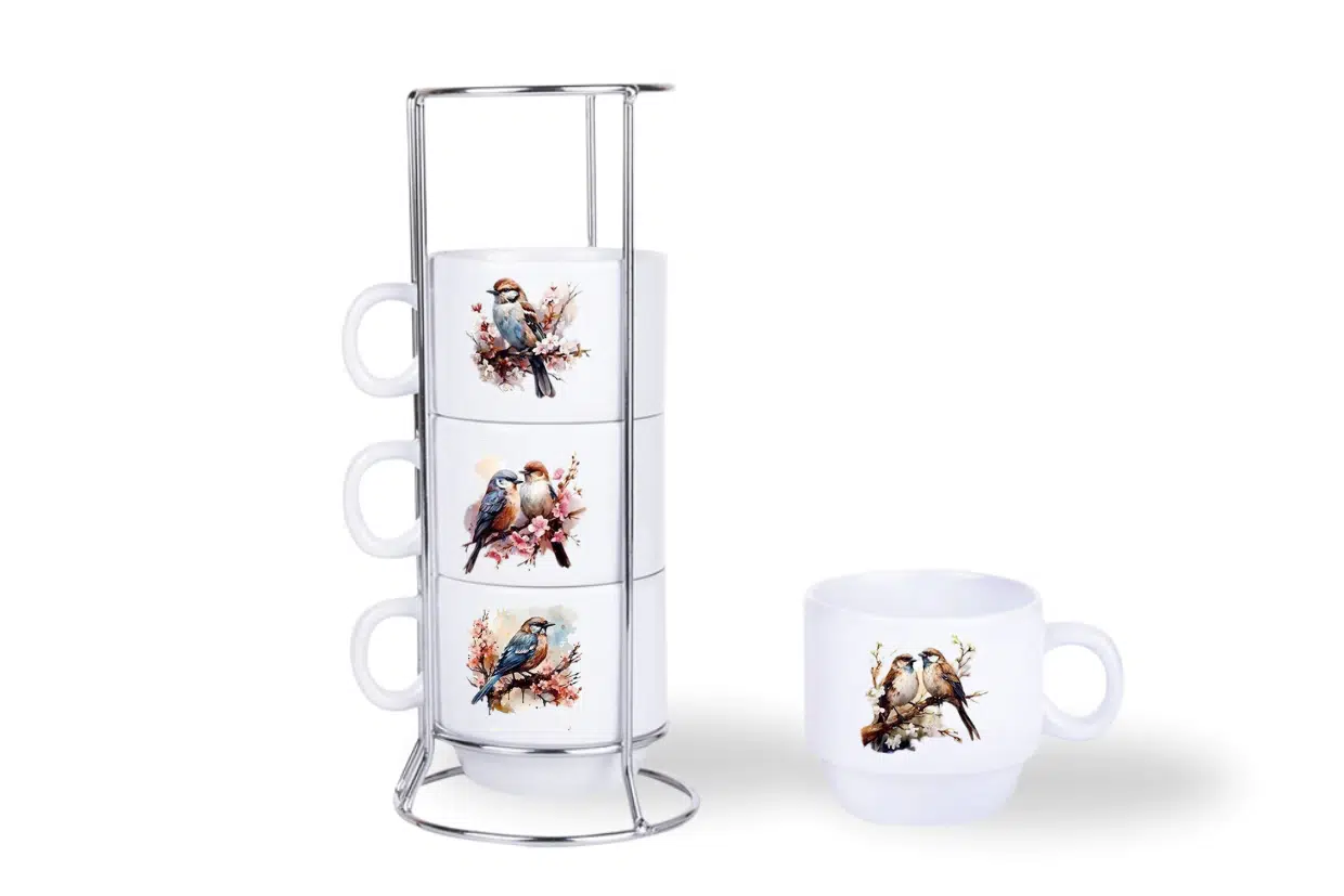 DeepCraft Stantlı 4'lü Fincan Seti Çıkmaz Baskılı Kuşlar Desenli