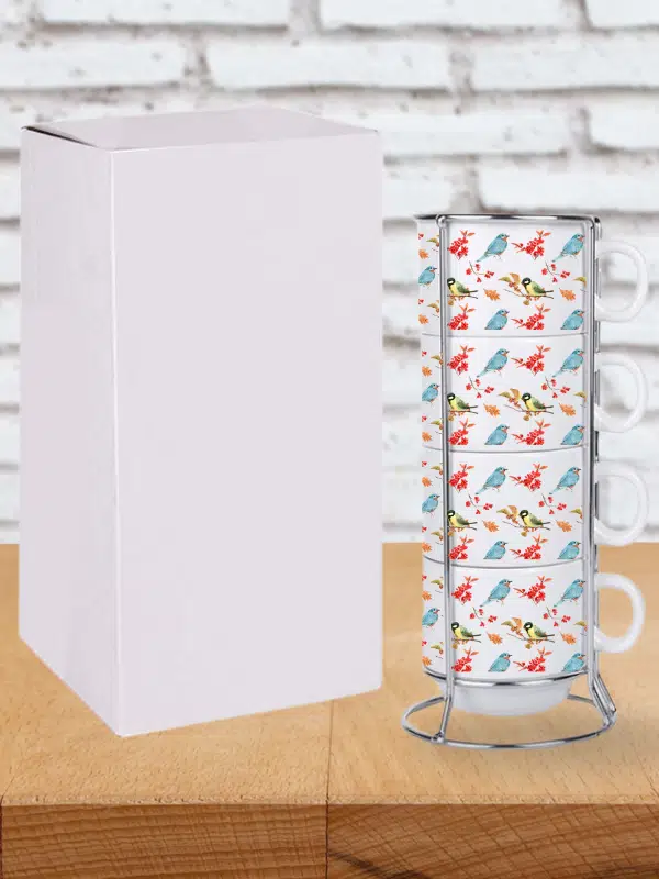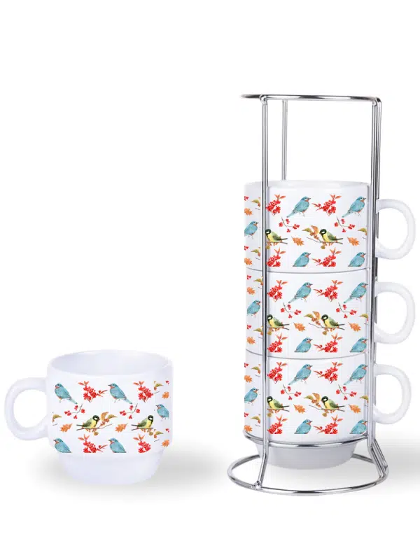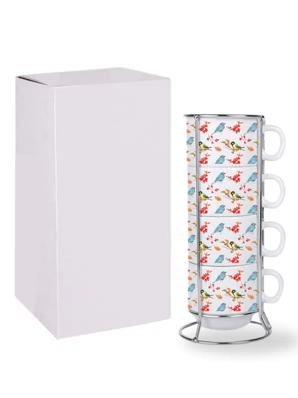 DeepCraft Stantlı 4'lü Fincan Seti Çıkmaz Baskılı Kuşlar Desenli 4 Adet Fincan Seti 190 ml