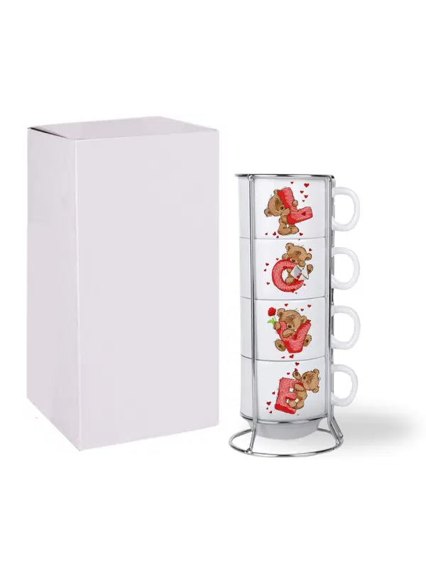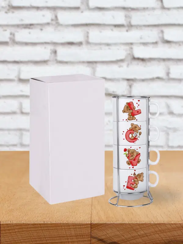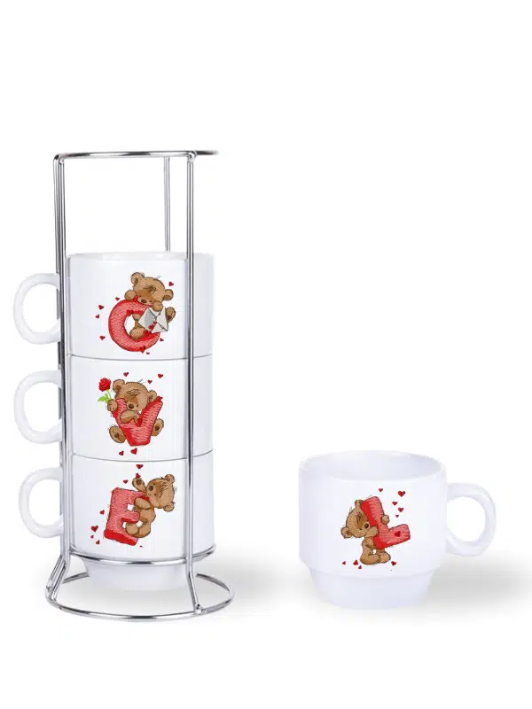 DeepCraft Stantlı 4'lü Fincan Seti Çıkmaz Baskılı Love Desenli