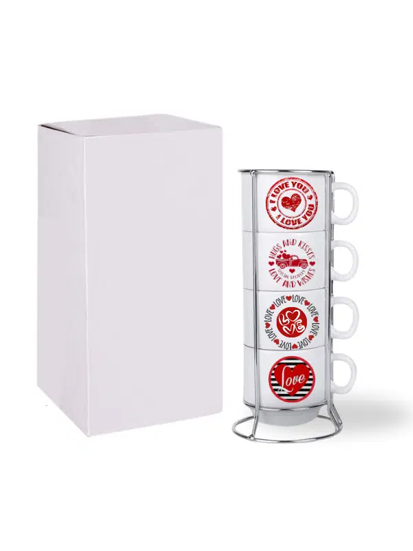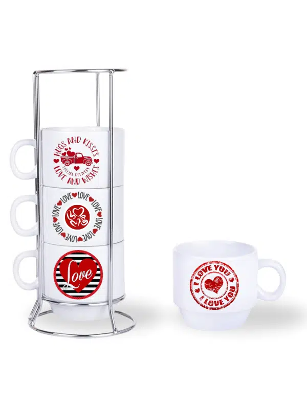 DeepCraft Stantlı 4'lü Fincan Seti Çıkmaz Baskılı Love&Love Desenli