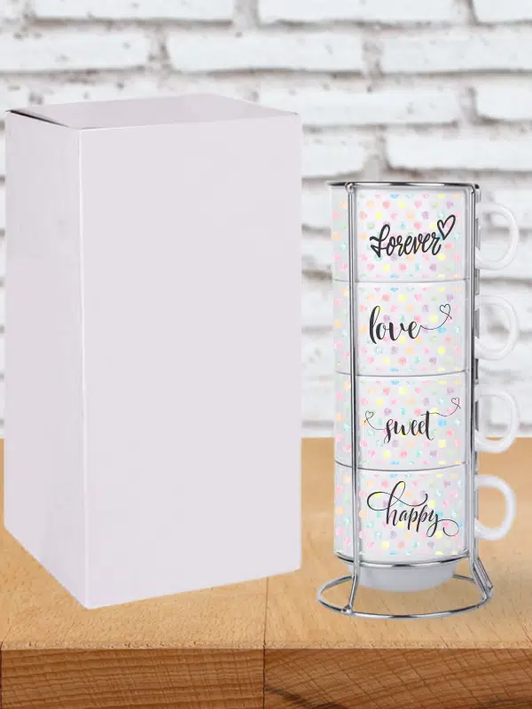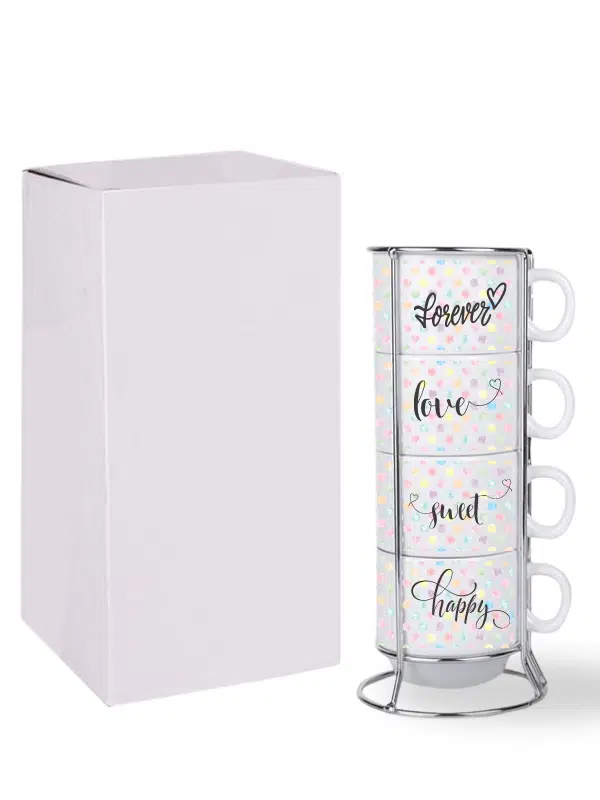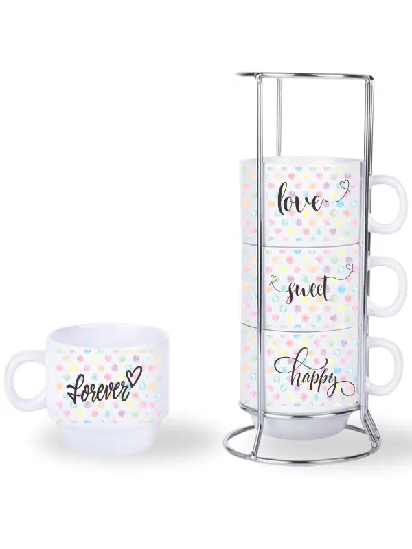 DeepCraft Stantlı 4'lü Fincan Seti Çıkmaz Baskılı Puantiyeli Desenli 4 Adet Fincan Seti 190 ml