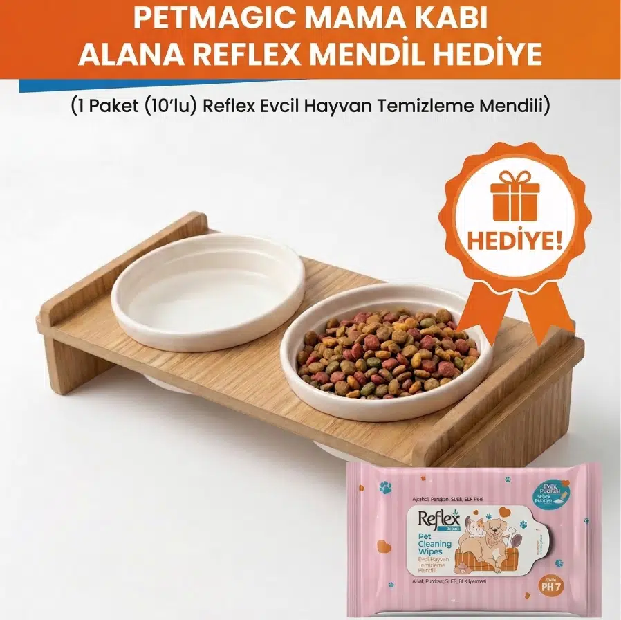 Evcil dostunuzun konforu ve sağlığı düşünülerek tasarlanan bu ahşap yükseltilmiş mama kabı, hem şık görünümü hem de fonksiyonelliği ile öne çıkar. Üstelik Reflex evcil hayvan temizleme mendili HEDİYE!