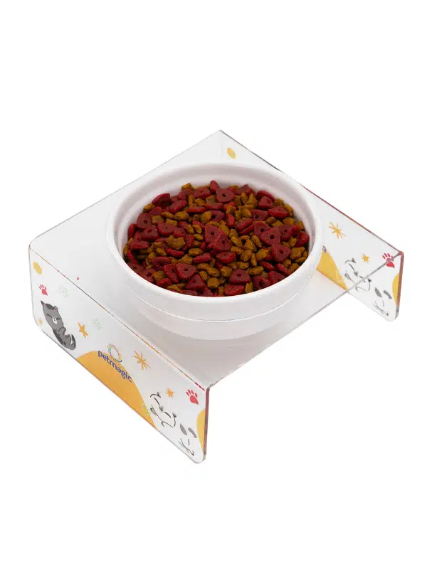 Petmagic Akrilik Beyaz Seramik Tekli Evcil Hayvan Kedi ve Mini Irk Köpek Mama Kabı-YuvarlananKedi