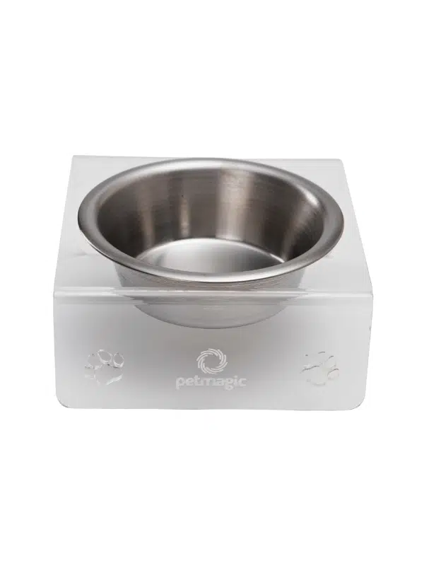 Petmagic Akrilik Çelik Kase Tekli Evcil Hayvan Kedi ve Mini Irk Köpek Mama Kabı-Şeffaf