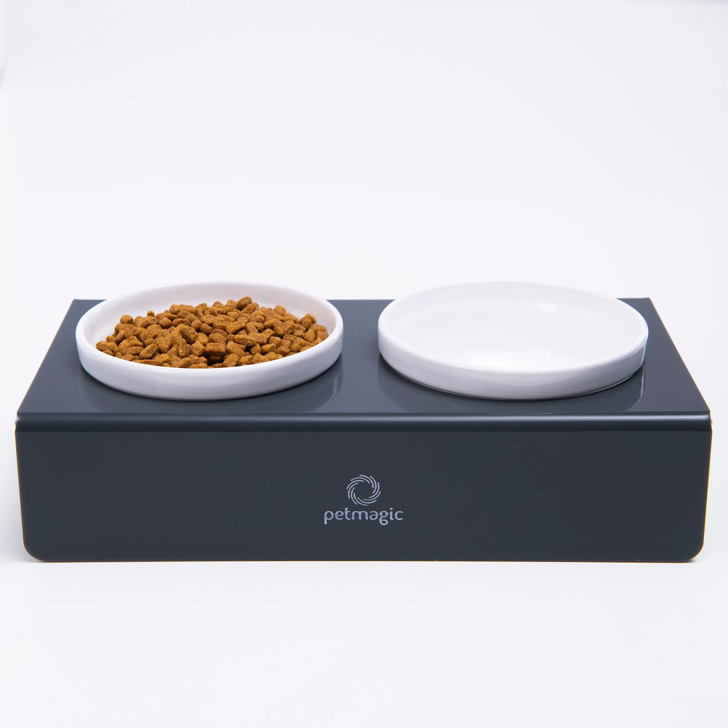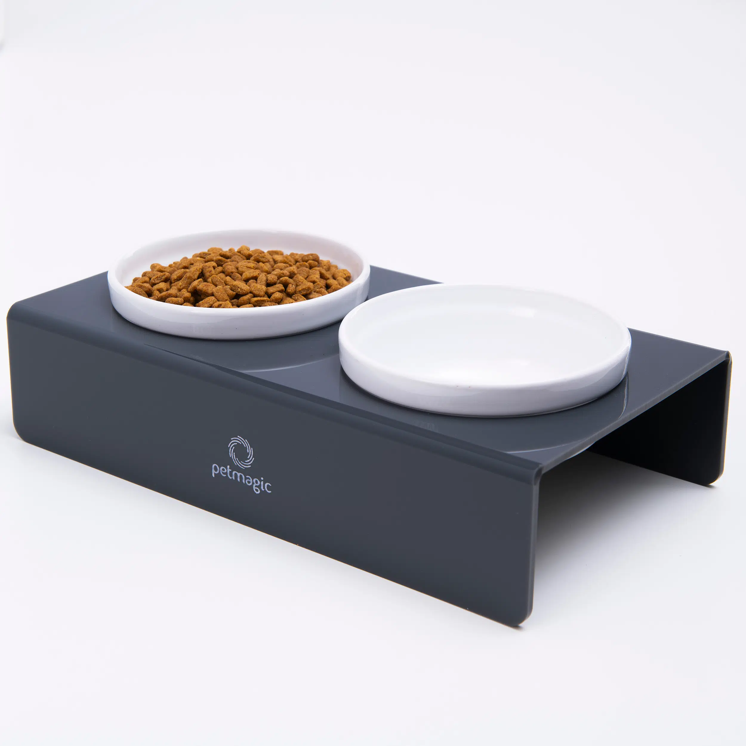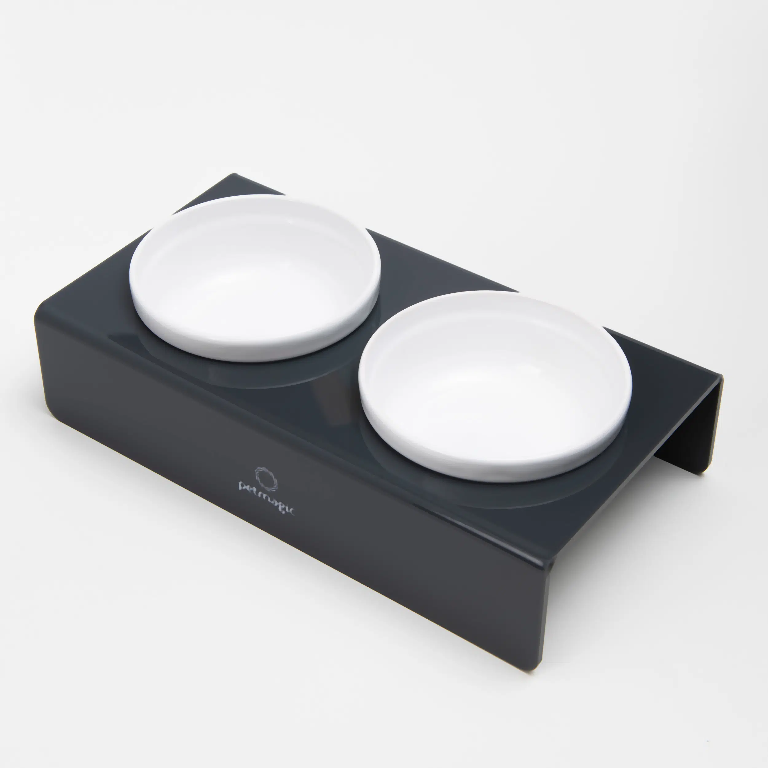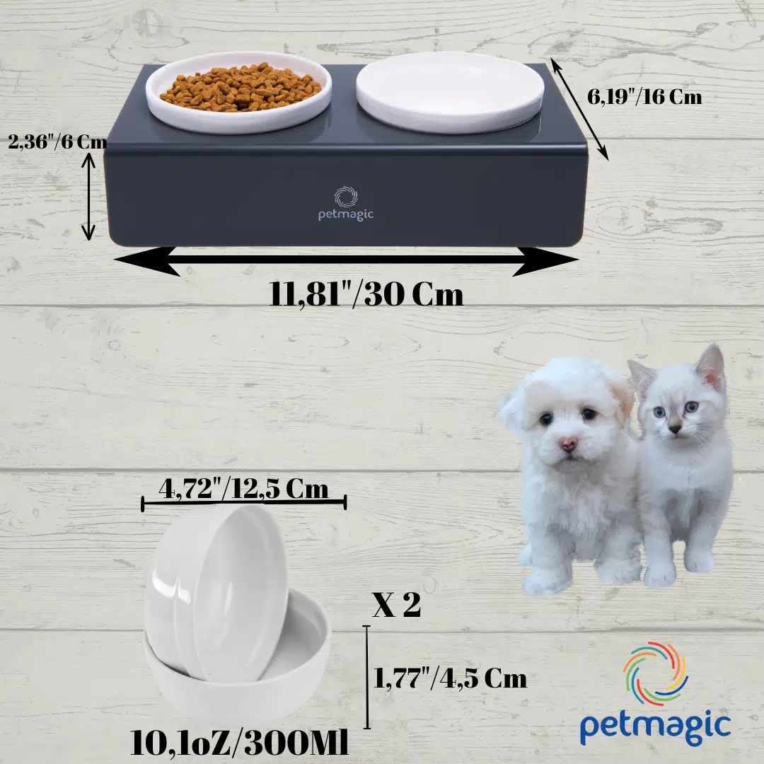 Petmagic Akrilik Pleksi Evcil Hayvan Beyaz Seramik Kaseli Kedi ve SM Köpek Mama Su Kabı-Antrasit