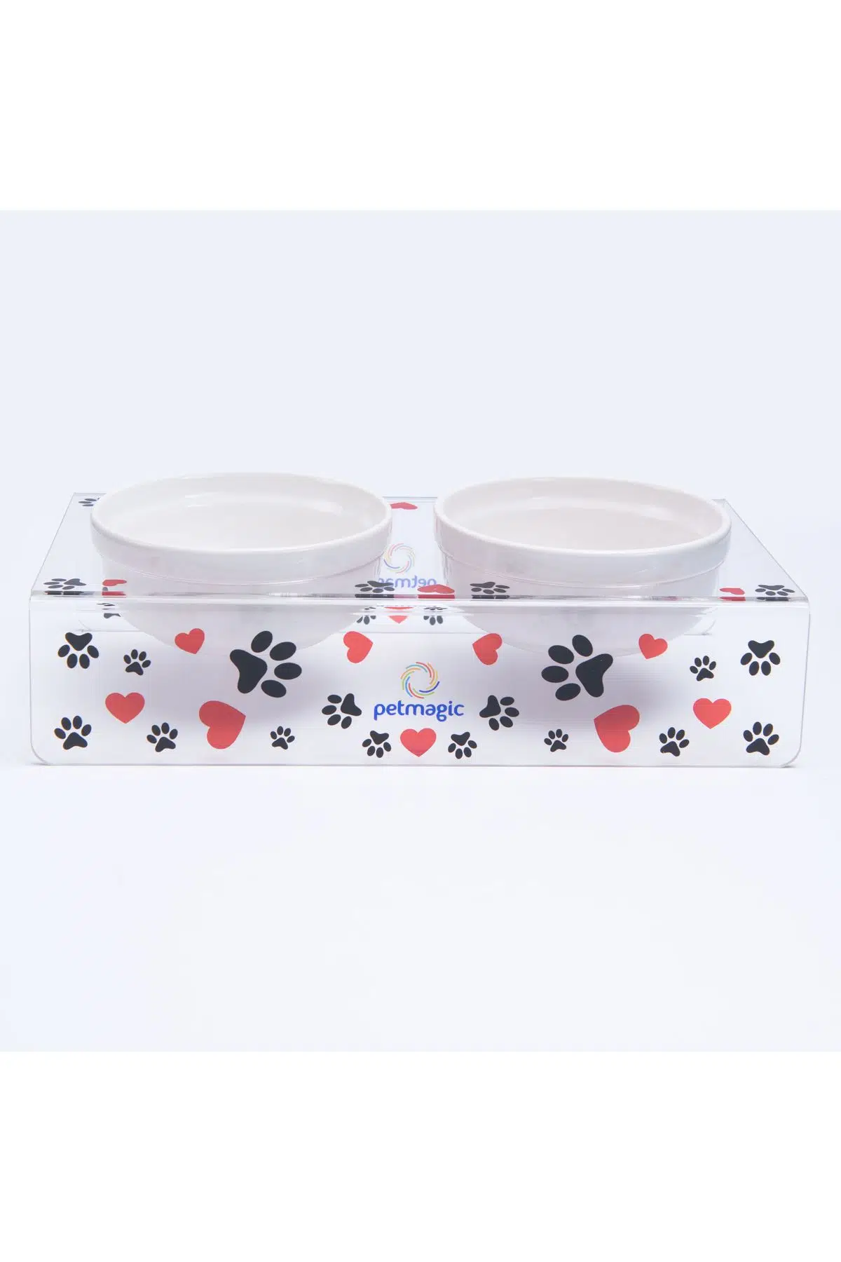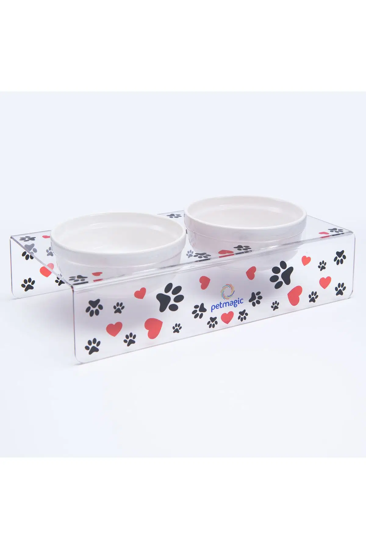 Petmagic Akrilik Pleksi Evcil Hayvan Beyaz Seramik Kaseli Kedi ve Mini Köpek Mama Ve Su Kabı- Siyah Patili Ürün Özellikleri: Patili dostlarımız için sağlıklı yemek ve su içmeleri için özel olarak üretmiş olduğumuz ürün 1. Sınıf Pleksiglass malzemeden üretilmiştir. Pleksigalss (akrilik) malzeme camdan daha dayanıklı kırılmaya karşı dirençlidir. Ürüne ait bütün parçalar elde yıkamaya uygundur. Ürünün Ölçüleri : En : 16 Cm Boy: 30 Cm Yerden Yükseklik : 6 Cm (Kaseyle beraber 8 Cm) Kase Çap Ölçüsü 12,5 Cm. 1 Kase 400 ml. dir. Ürünlerimiz kedi ve mini ırk köpekler için özel olarak tasarlanmıştır. Eklemlerindeki ve omurgalarındaki baskıyı hafifleterek çok ergonomik bir beslenme deneyimi sunar. Bunun üzerine, yiyeceklerle daha az oynamaya ve evi dağıtmaya izin veriyorlar. Uzun ömürlü mobilyalara yapılan gerçek bir yatırımdır.