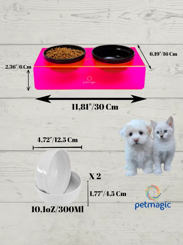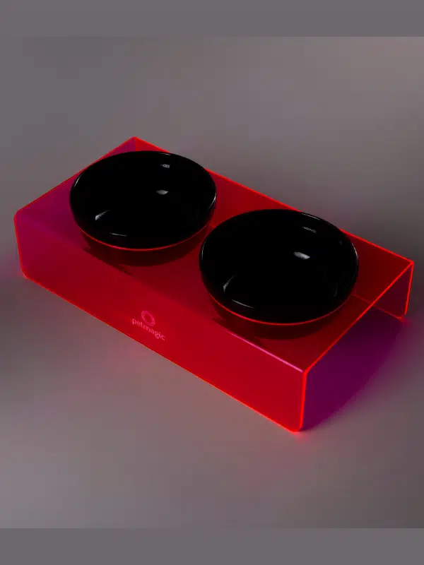 Petmagic Akrilik Pleksi Evcil Hayvan Siyah Seramik Kaseli İkili Kedi ve Köpek Mama Su Kabı-Neon Kırmızı